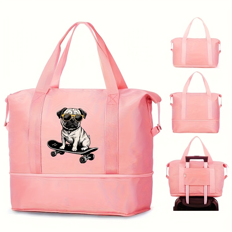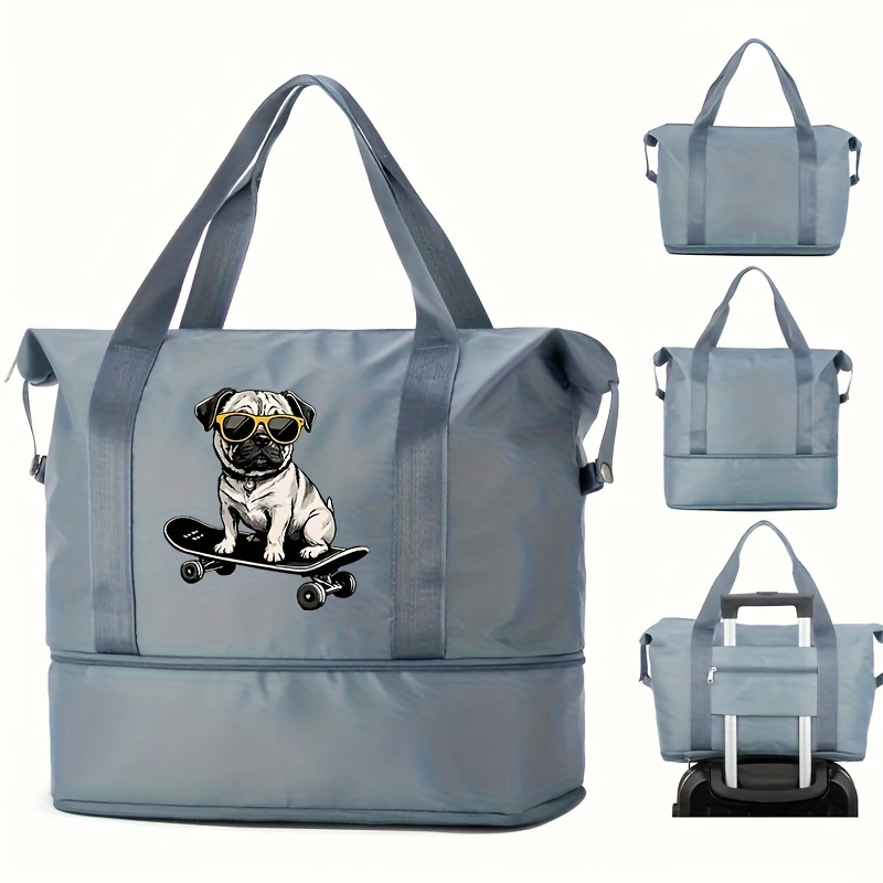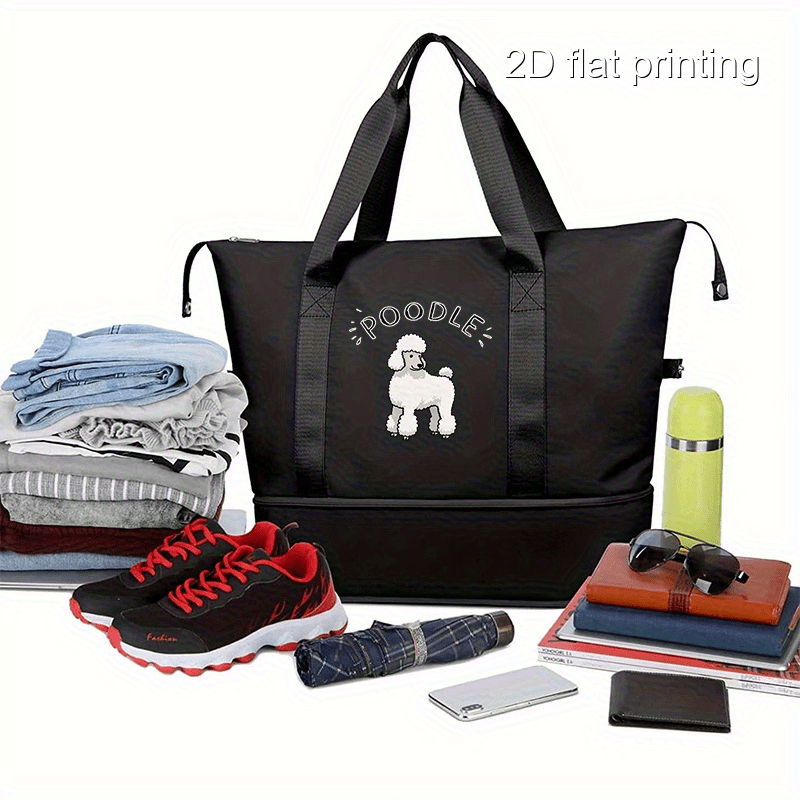 1pc Poodle Print Men'S Trendy Large Tote Bag - Durable Black Gym & Yoga Maternity Bag with Wet/Dry Separation, Spacious Interior for Sports, Workout Essentials, or Pet Supplies