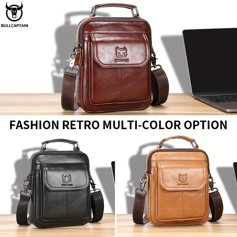 [Durable Leather Bag] Bull Captain Men's Large Capacity Shoulder Bag | Brown Leather, Multi-Compartment, Adjustable Strap, Durable and Stylish for Everyday Use