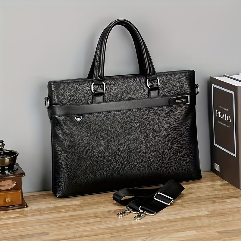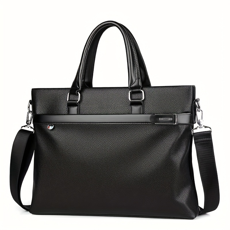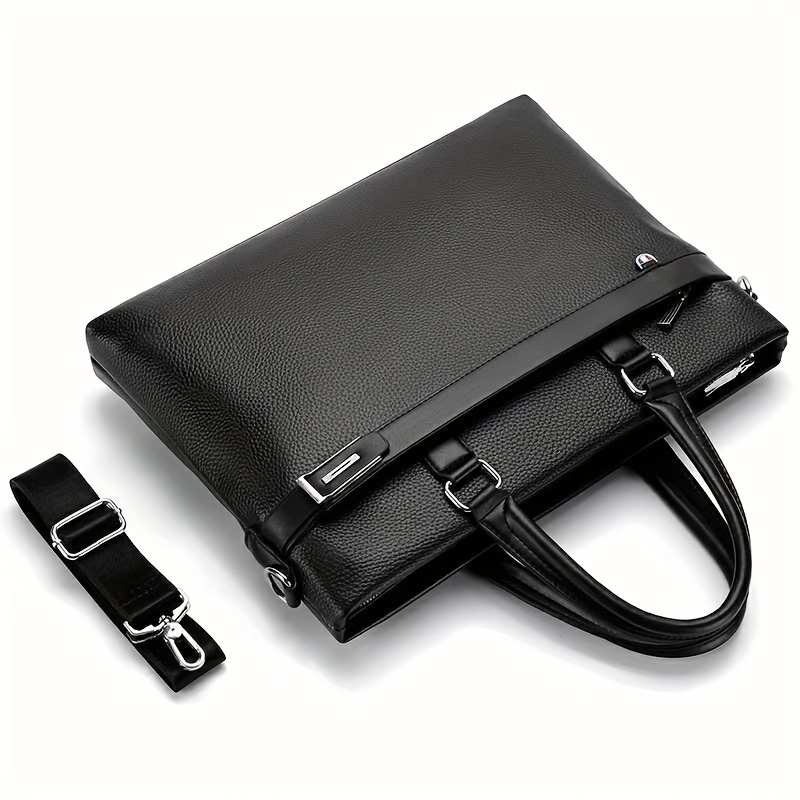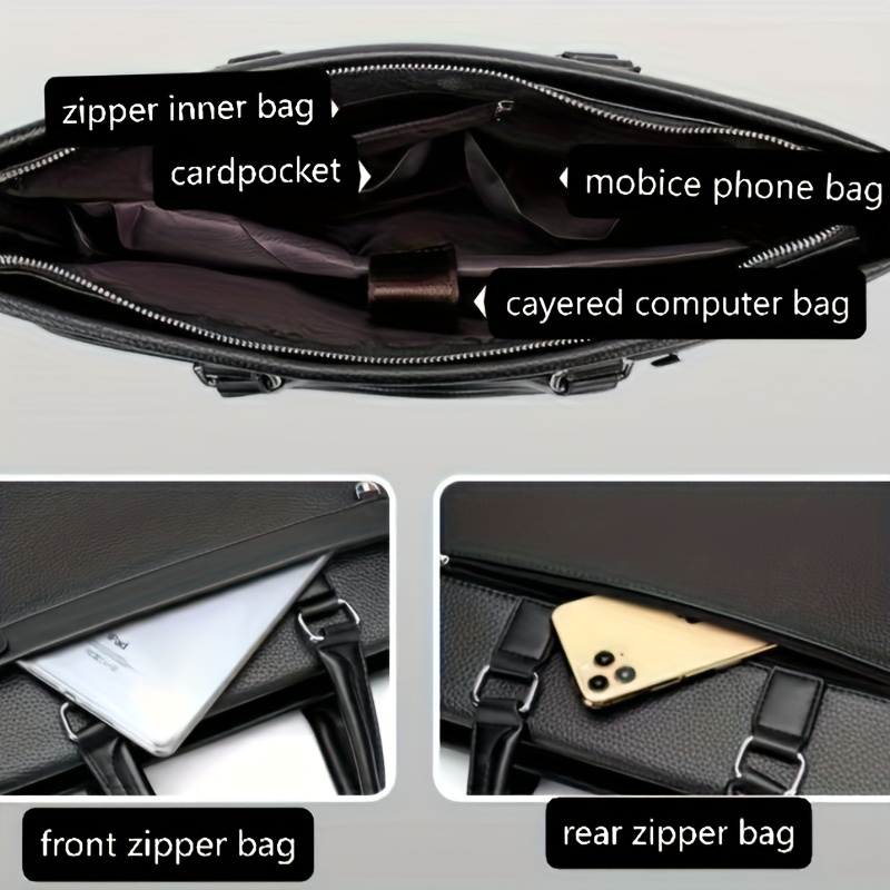 [Luxury Briefcase] Luxury Men's Briefcase | Sleek Black Office and Travel Bag with Laptop Compartment, Adjustable Shoulder Strap, and Secure Zip Closure for Daily Commute, Business, or Casual Outings