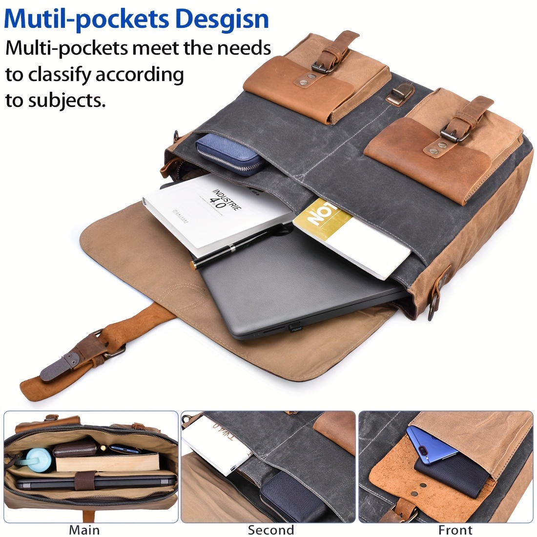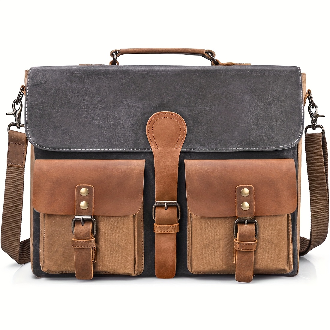 NEWHEY Men'S 15.6-Inch Laptop Crossbody Bag - Lightweight Canvas Shoulder Bag with Detachable Strap, Zipper Closure & Polyester Lining for Office, Commuting, Travel - Grey, Laptop Bag, Commuting Accessory, Minimalist Design, Zipper Closure Bag