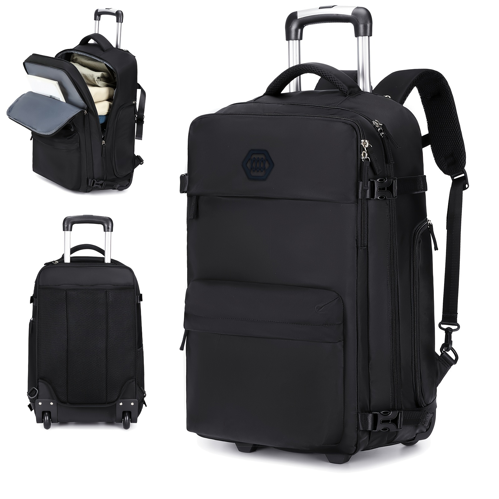 Rolling Backpack for Women, 17-inch Laptop Travel Bag with Wheels, Hand Luggage Wheeled Backpack with Shoe Compartment, Overnight Suitcase Business University Computer Bag