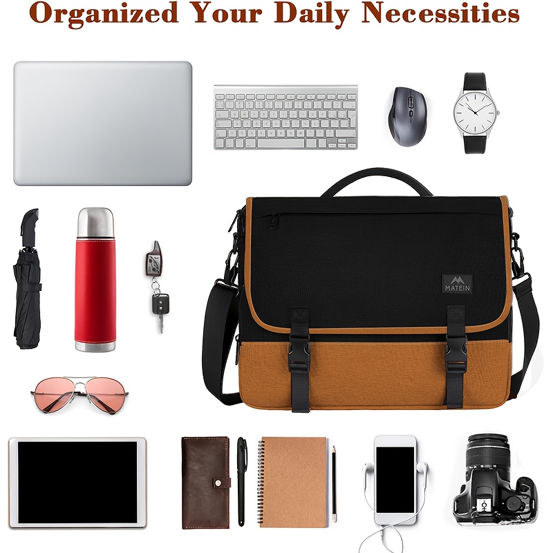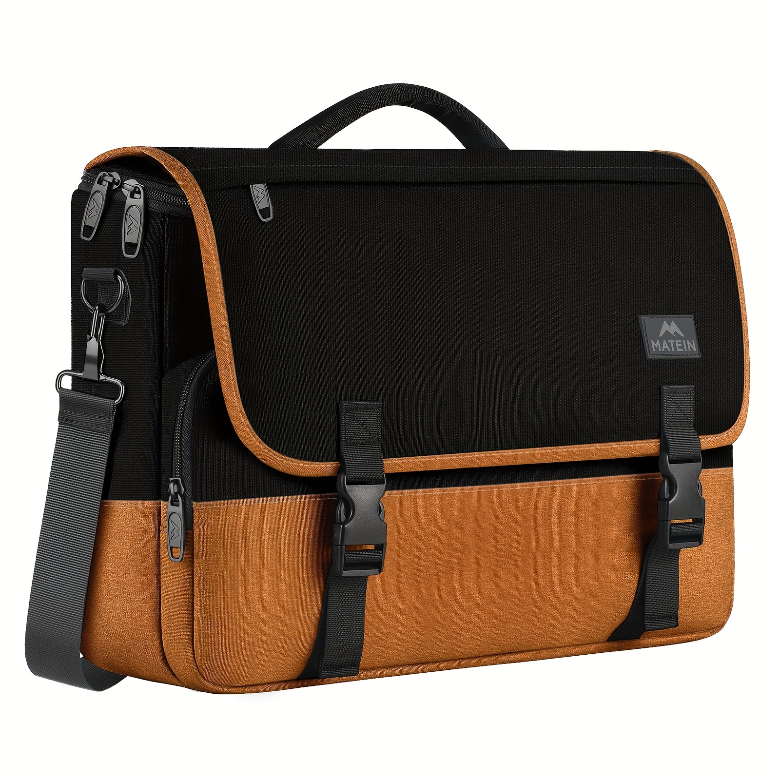 TSA-Approved Laptop Briefcase - Quilted Black & Golden Messenger Bag with Adjustable Shoulder Strap, Multiple Compartments & Secure Zippers, Durable Polyester for Business, Office, Travel, Professional Carryall | Goldtone Hardware