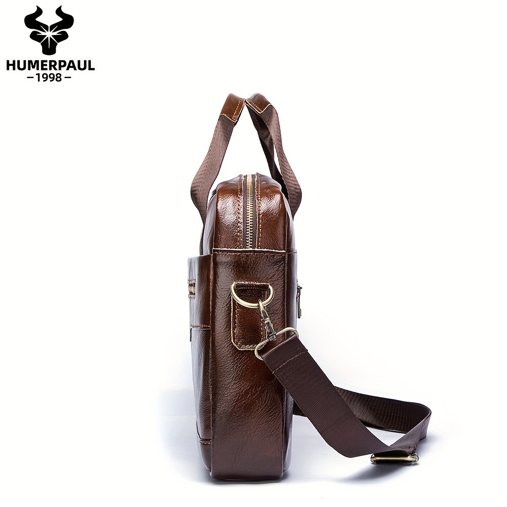 Vintage Brown Leather Men's Business Shoulder Bag - Genuine Leather Messenger Handbag with Adjustable Strap, Multiple Compartments & Zippers for Office Use, Professional Attache Case | Stylish Zipper Bag | Leather Briefcase