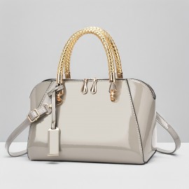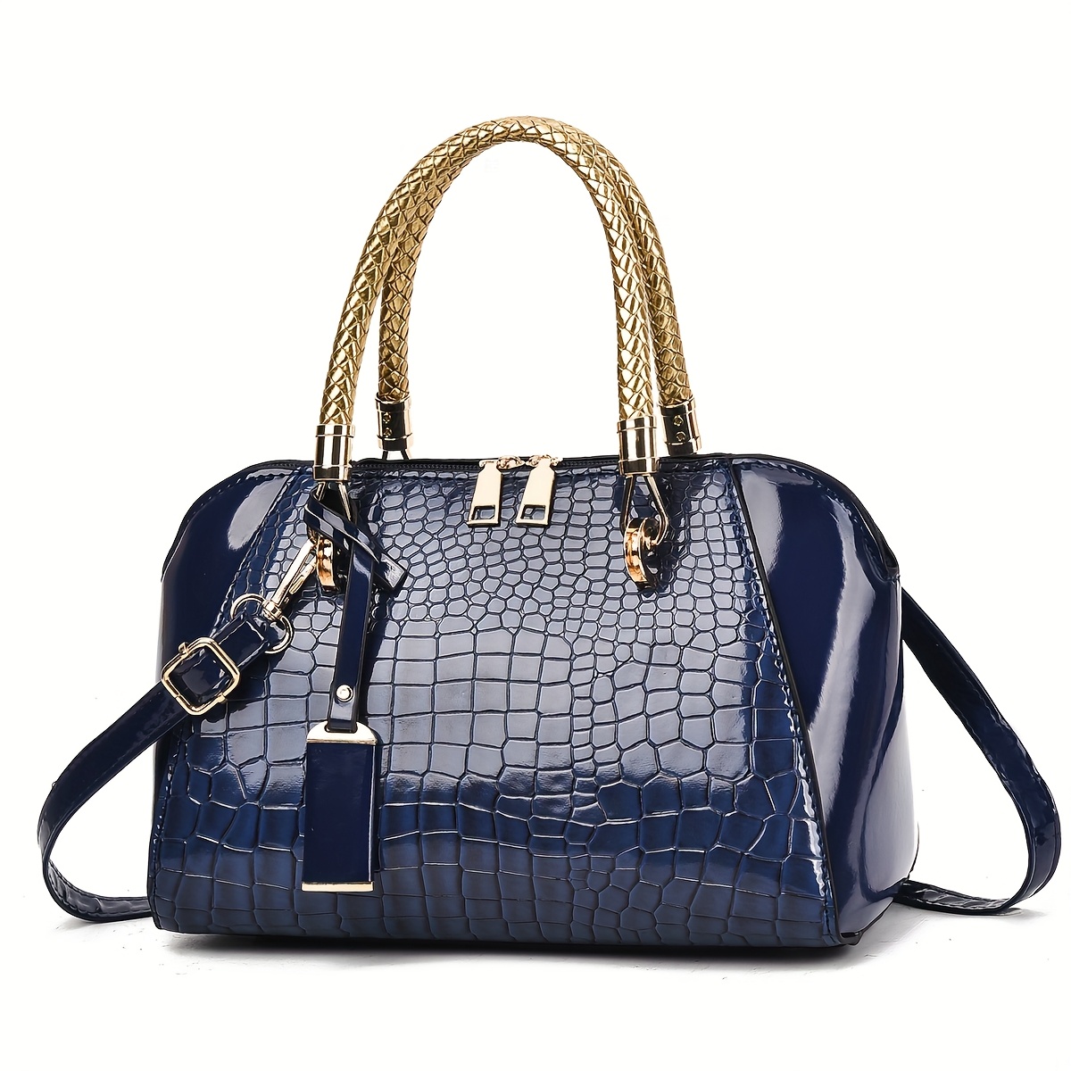 Women'S Patent Leather Handbag - Elegant Crocodile-like texture, Zipper Closure, Golden-Tone Hardware, Available in, Coffee Brown, Navy, Burgundy Red - Formal & Everyday Purse for Women, Versatile Accessory, Sophisticated Design, Premium Detailing
