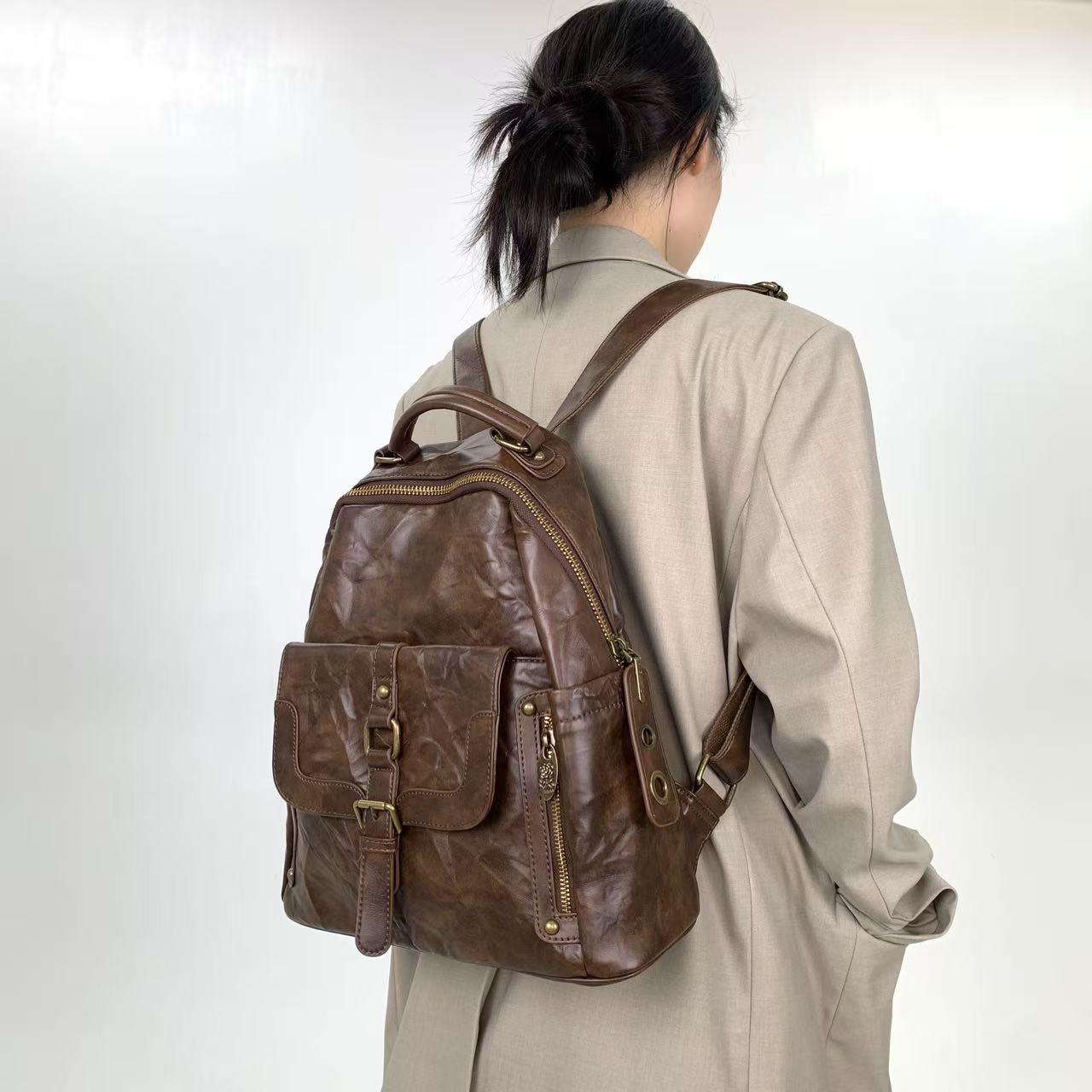 Women'S Vintage Backpack - Large Capacity Purse with Adjustable Strap, Zipper Closure, Synthetic Bag for Women, Coffee Brown/Black - Everyday, Work, Party, Travel - Y2K Street Style Handbag, Party Accessory, Retro Aesthetic, Durable Construction, Spacious Tote, Fashion Lovers