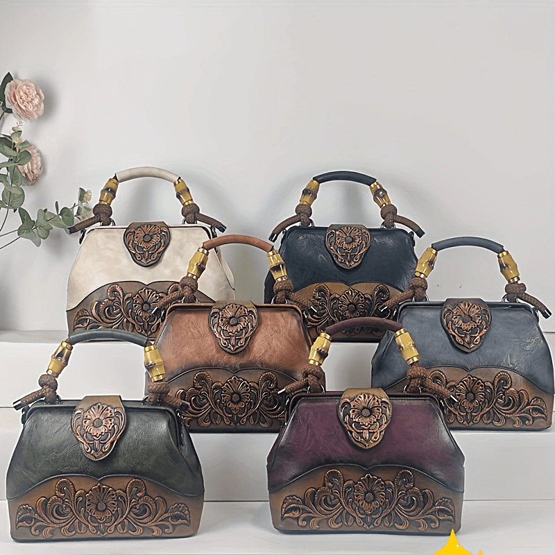 Women'S Vintage Floral-engraved Synthetic Handbag - Elegant Crossbody/Shoulder Bag with Detachable Strap, Magnetic Closure & Golden-Tone Hardware, /Grey/Green/, Polyester - Versatile Everyday & Special Occasion Purse