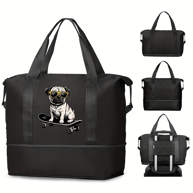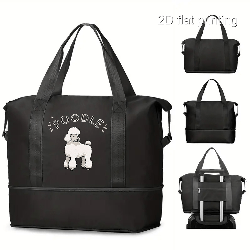 1pc Poodle Print Men'S Trendy Large Tote Bag - Durable Black Gym & Yoga Maternity Bag with Wet/Dry Separation, Spacious Interior for Sports, Workout Essentials, or Pet Supplies