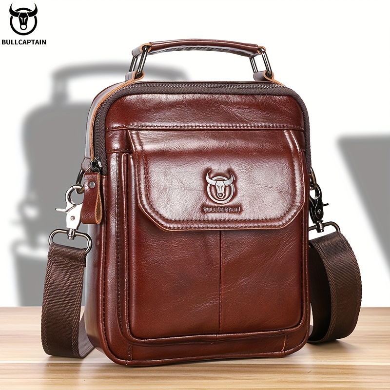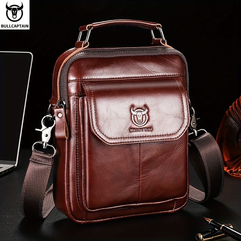 [Durable Leather Bag] Bull Captain Men's Large Capacity Shoulder Bag | Brown Leather, Multi-Compartment, Adjustable Strap, Durable and Stylish for Everyday Use