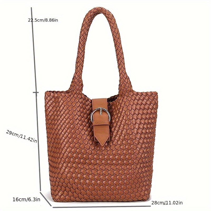 Handwoven Tote Bag for Women - Classic Large Capacity Synthetic Faux Leather Shoulder Bag with Double Handles, Elegant Black Travel & Commuter Handbag with Secure Buckle Closure, Everyday Carry Bag, Durable Stitched Detail