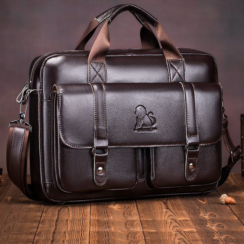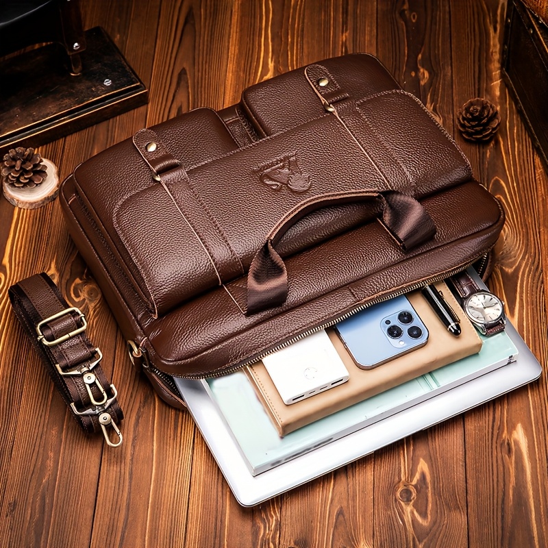 Men's Genuine Leather Business Briefcase - 15" Laptop Messenger Bag with Multiple Compartments, Adjustable Shoulder Strap & Contrast Stitching in Brown, Perfect for Travel and Professional Use, Laptop Bag