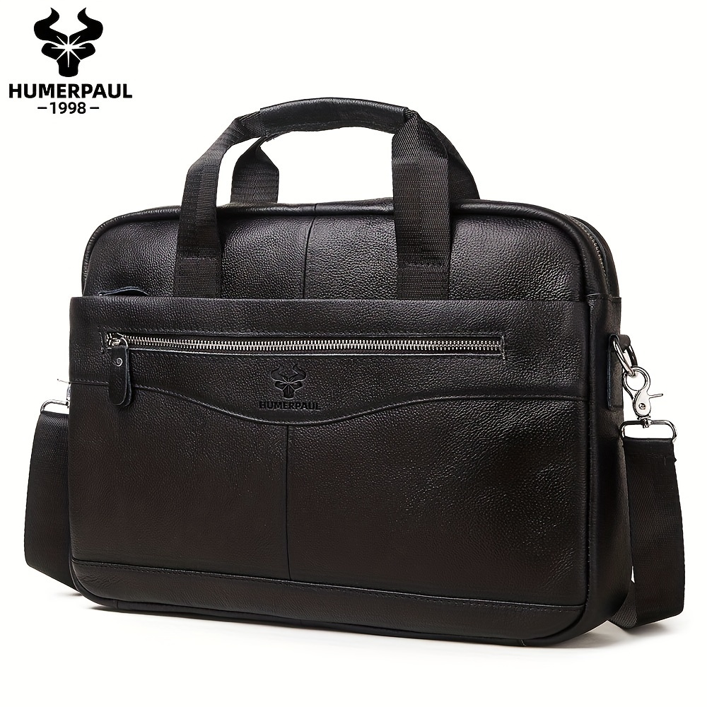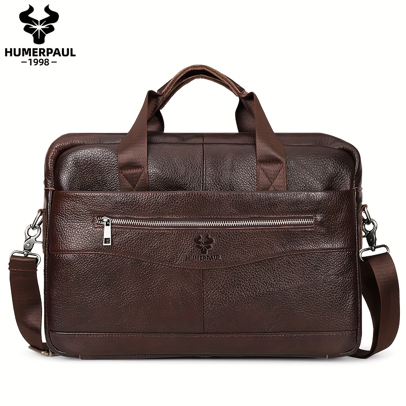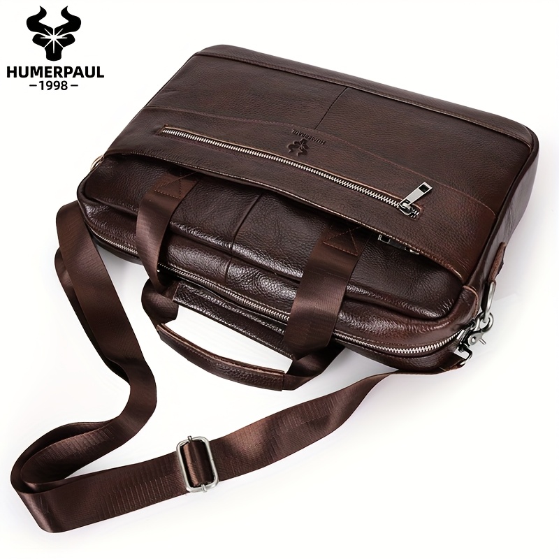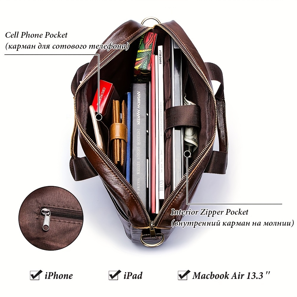 Vintage Brown Leather Men's Business Shoulder Bag - Genuine Leather Messenger Handbag with Adjustable Strap, Multiple Compartments & Zippers for Office Use, Professional Attache Case | Stylish Zipper Bag | Leather Briefcase