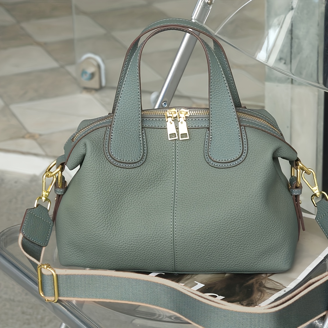 Wo 's Genuine Leather handbag - French Cow Full-Grain /Black Handbag with Golden-Tone Hardware, /Korean-Inspired Elegant Shoulder Purse, Wrist Strap & Zipper Closure for, Travel, Everyday (Luxury Handbag)