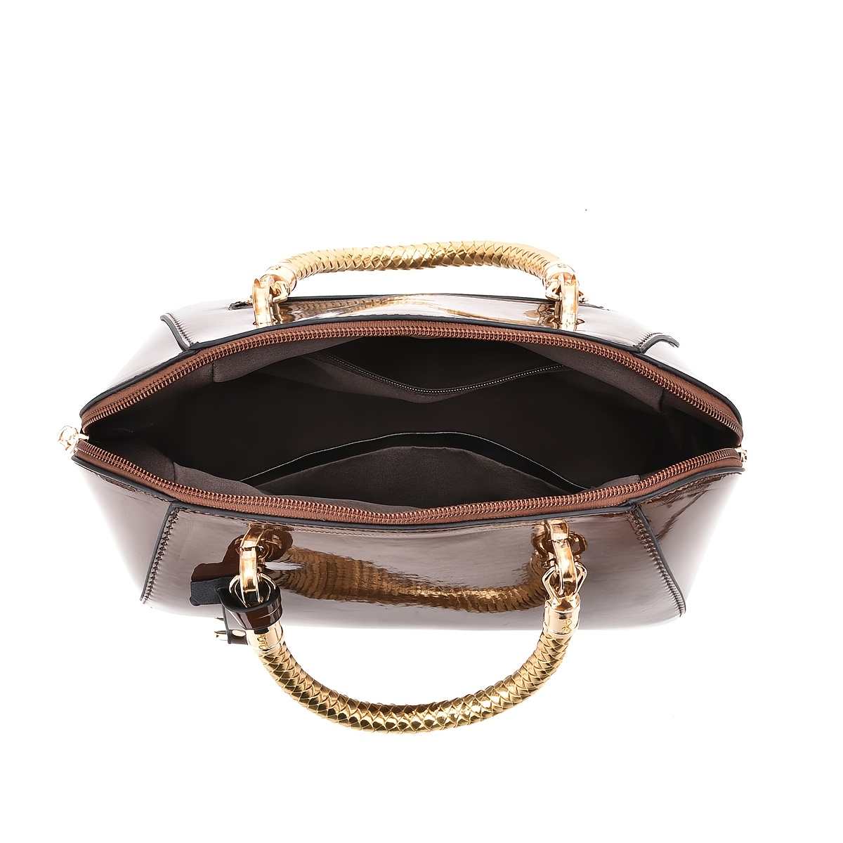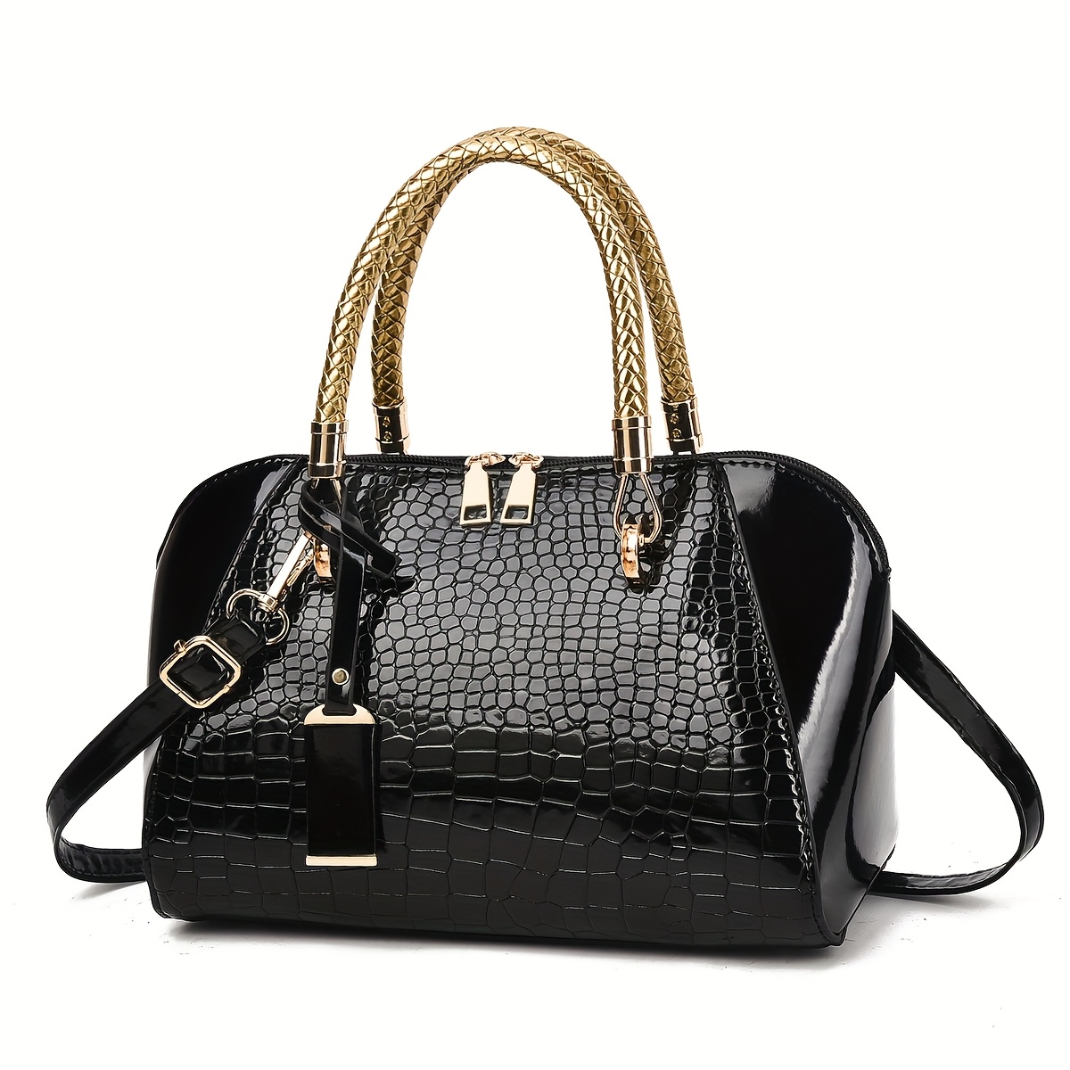 Women'S Patent Leather Handbag - Elegant Crocodile-like texture, Zipper Closure, Golden-Tone Hardware, Available in, Coffee Brown, Navy, Burgundy Red - Formal & Everyday Purse for Women, Versatile Accessory, Sophisticated Design, Premium Detailing
